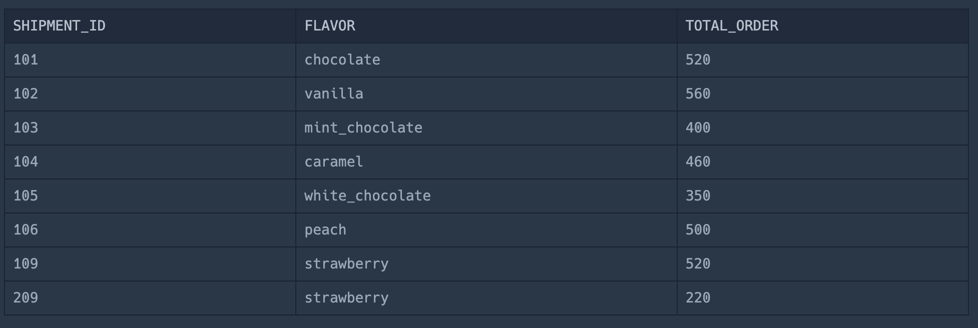 select FLAVOR, sum(TOTAL_ORDER) as TOTAL_ORDER
