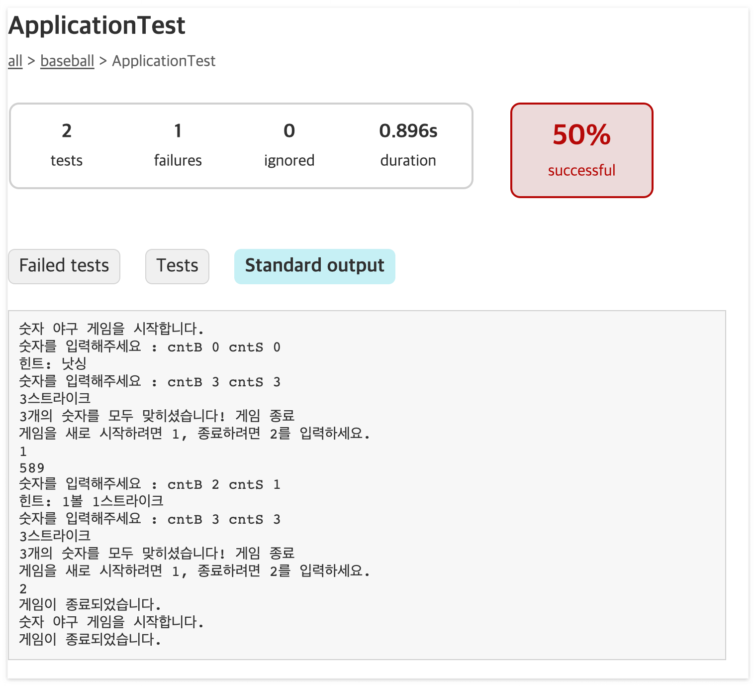 볼의 개수 세는 메서드 제외하고는 기능 구현에 성공한 것 같다. 그런데 이제 Application에 전부 몰아서 구현을 했다. 따라서 내일부터는 객체지향에 맞도록 최대한 리팩토링하도록 한다.